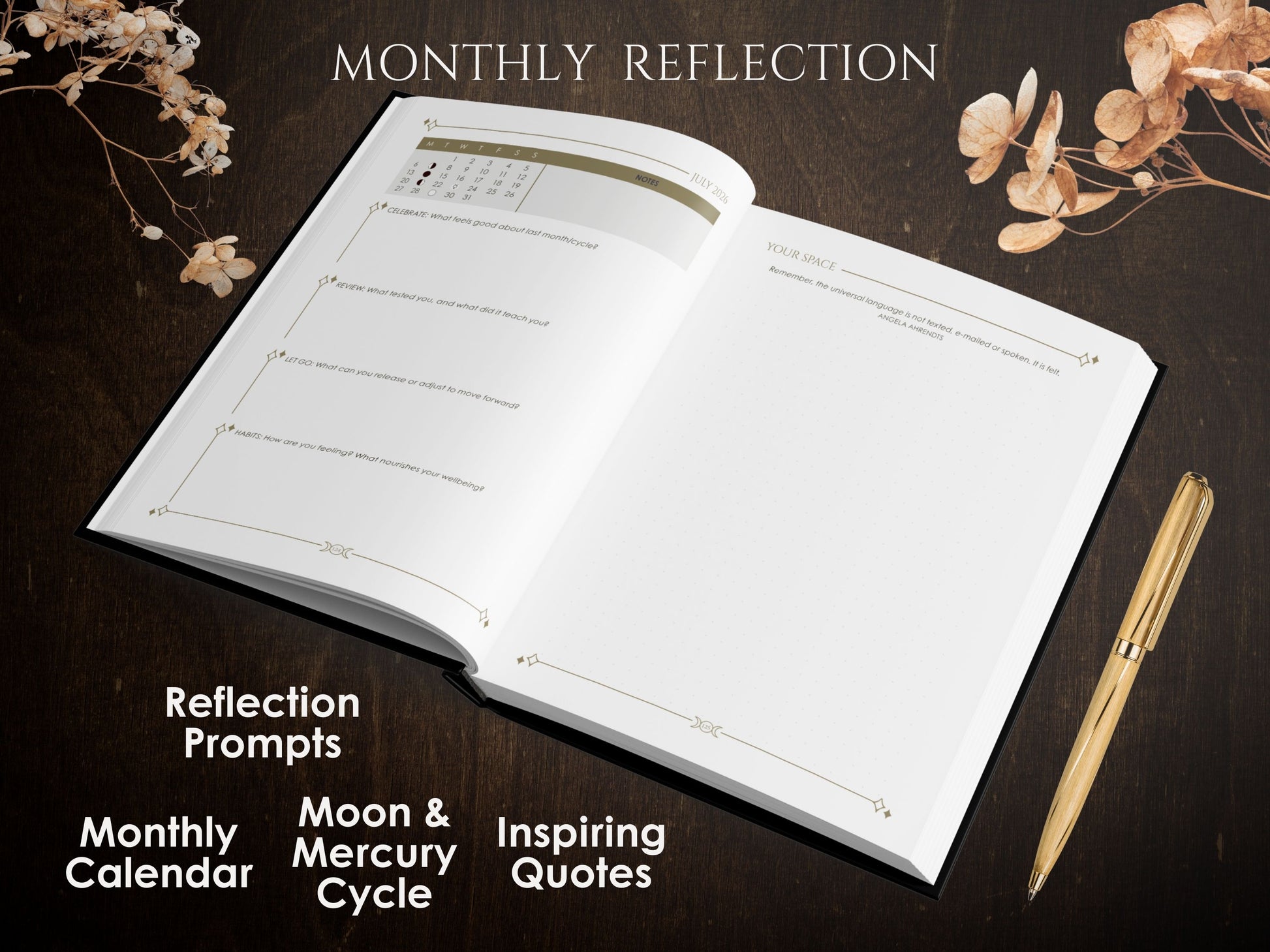 Prompts for gratitude and self-reflection invite clarity, joy, and growth.